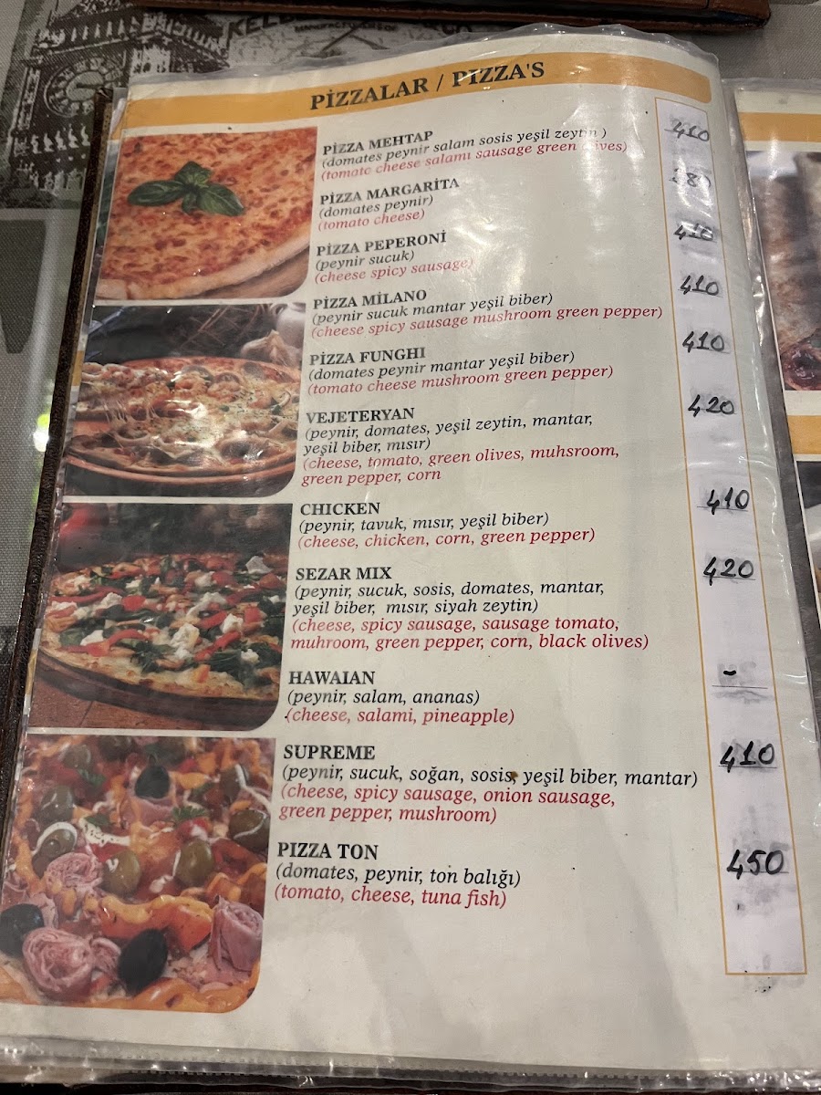 Peynir, sucuk, sosis, domates, mantar, yeşil biber, mısır, siyah zeytin